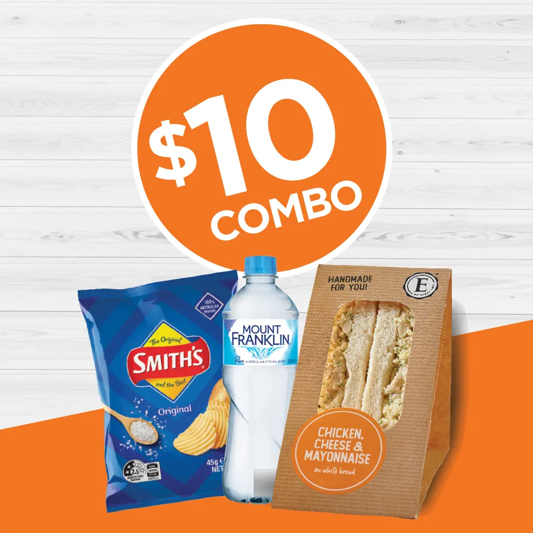 - Sandwich combo - Smiths 45g, Mount Frankin 600ml, Chicken Cheese & Mayonnaise Sandwich