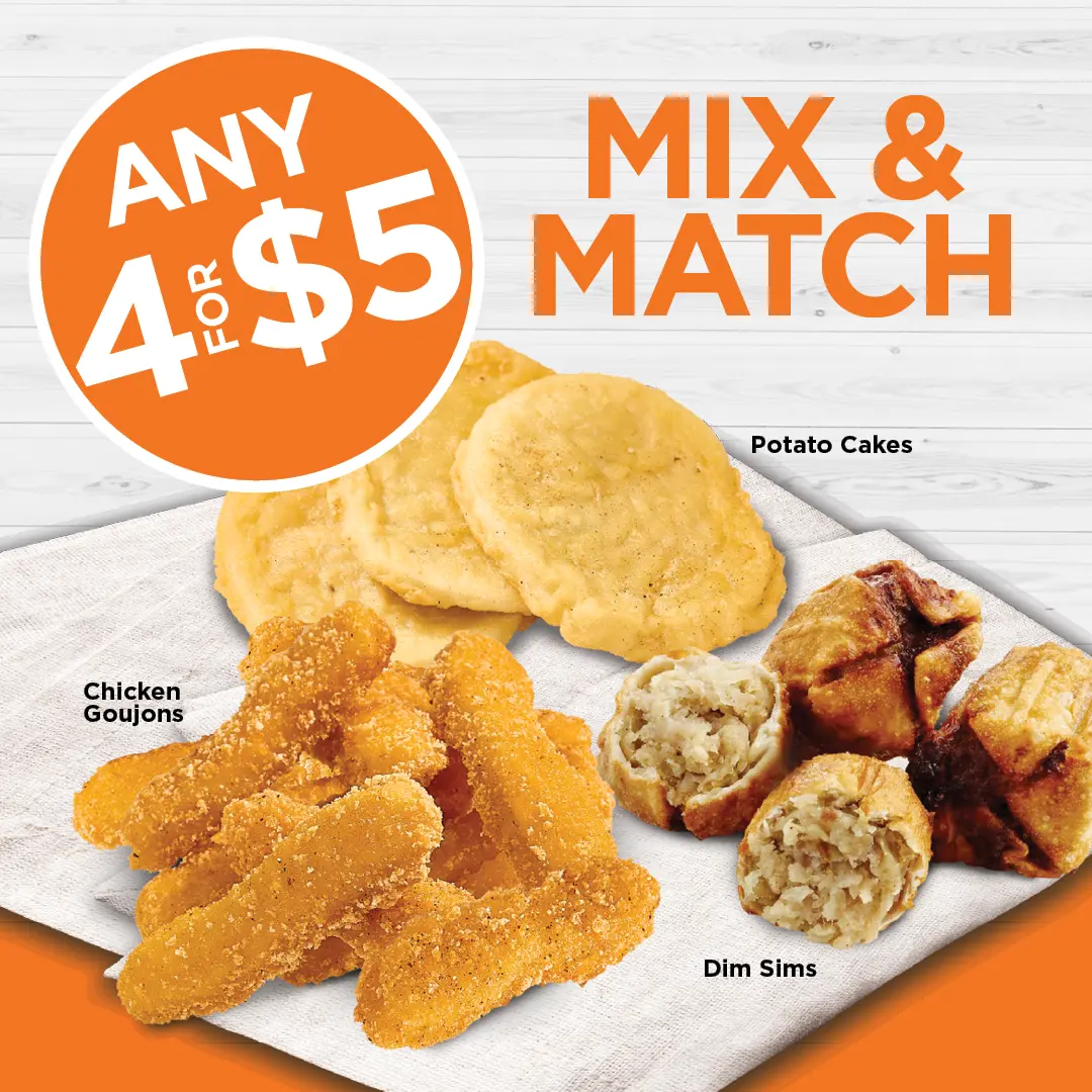 - Hot Box Specials - Chicken Goujons, Potato Cakes, Dim Sims