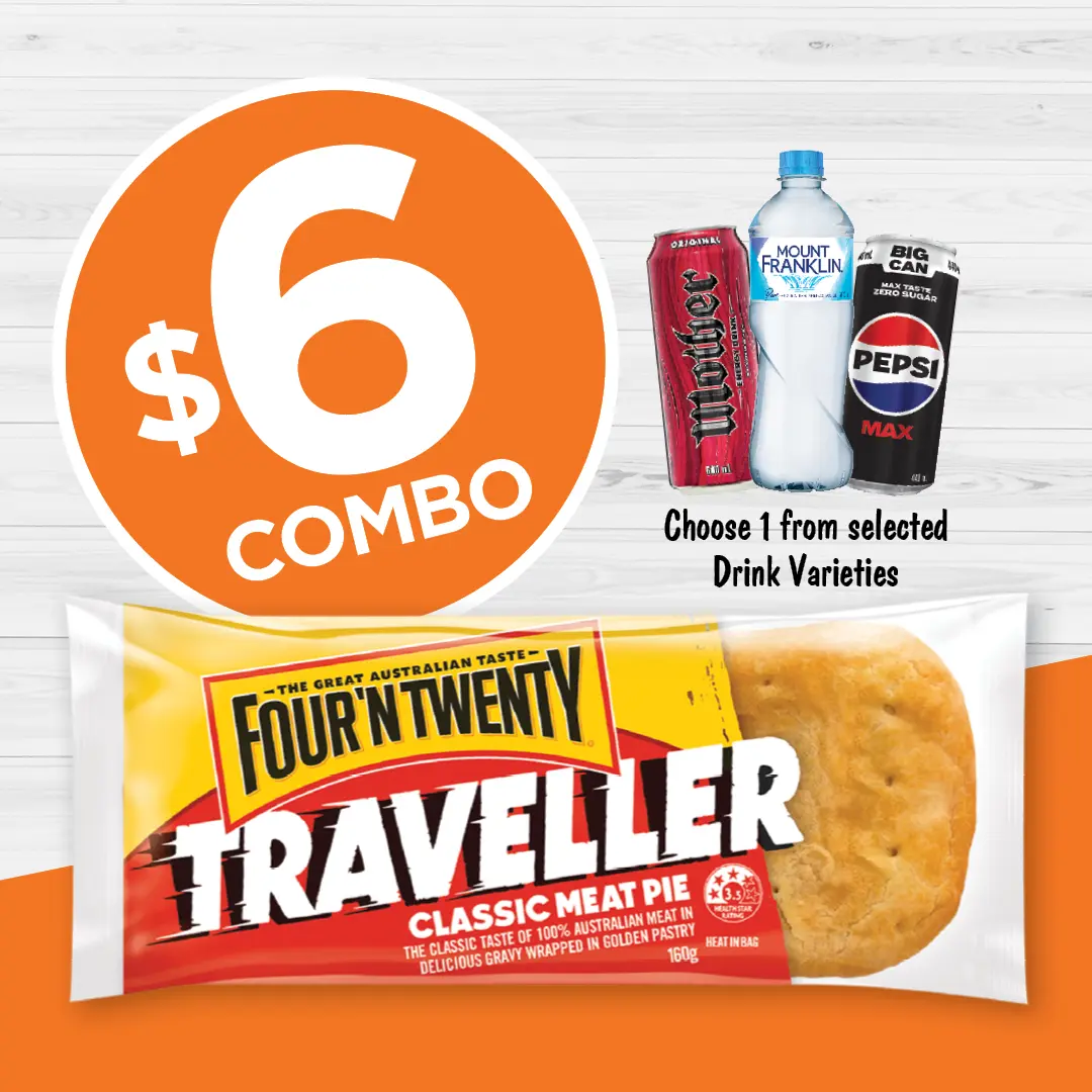 - Traveller + Mother 500mL, Mt Franklin 600mL or Pepsi or Schweppes 440mL
