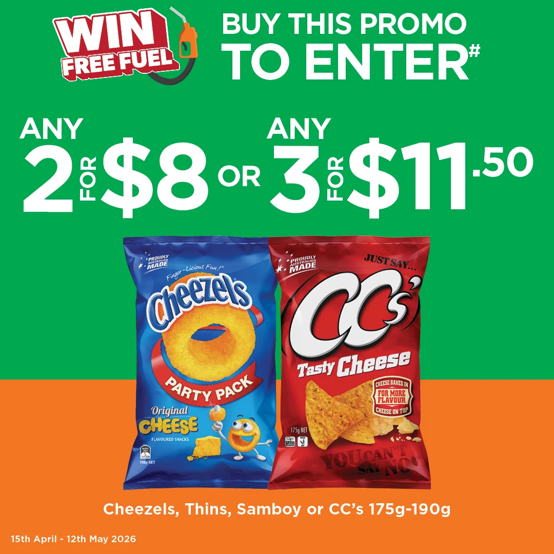 - Cheezels, Thins, Samboy or CC's 175g-190g